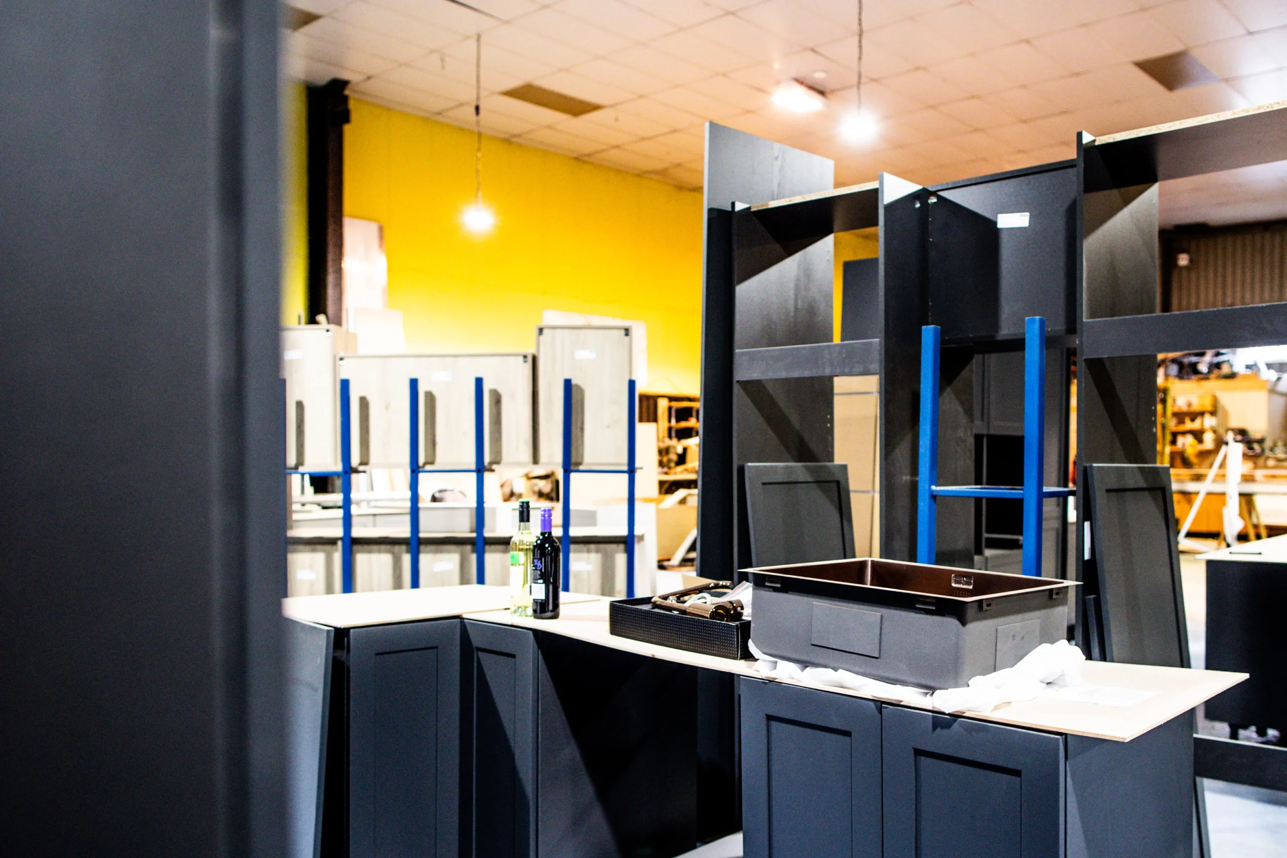 Within our individual setup bays, you can explore fully assembled kitchen displays, complete with doors, appliances, worktops, and handles—all available for you to view in advance.